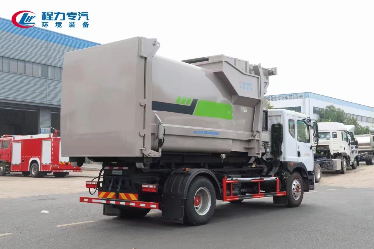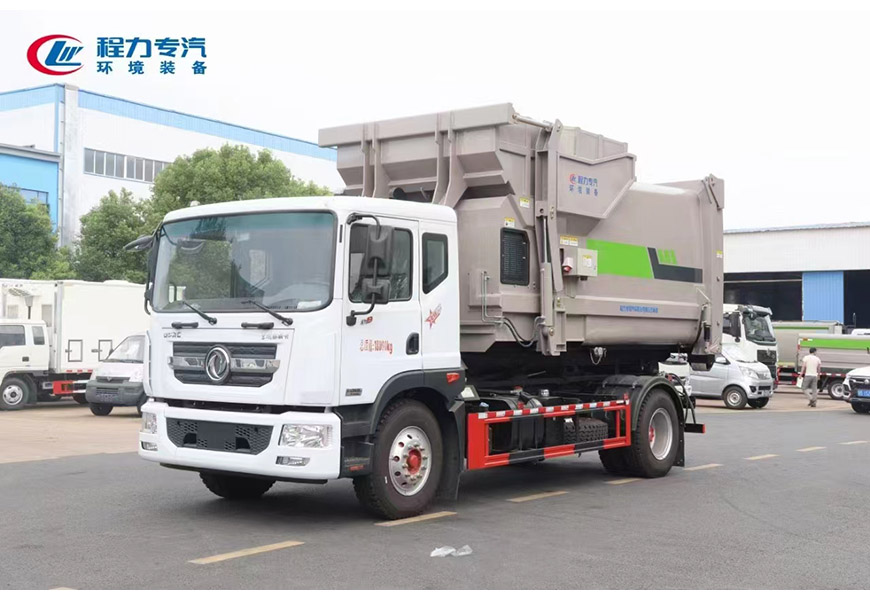新工藝國(guó)六東風(fēng)多利卡D9勾臂車+移動(dòng)壓縮箱
