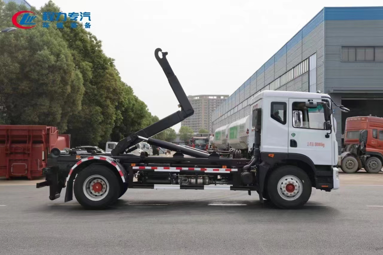 上裝配置 內(nèi)置安全泄壓閥(獨(dú)有技術(shù)),配套10-16方勾臂垃圾箱或移動(dòng)站,主勾臂由高強(qiáng)度板材制作,雙油缸控制,伸縮式主臂,加強(qiáng)型上裝結(jié)構(gòu),液壓支腿,橫向鎖緊,品牌多路閥,液壓油泵,標(biāo)配室內(nèi)外操作(帶遙控),防誤操作,帶平衡閥,液壓鎖。