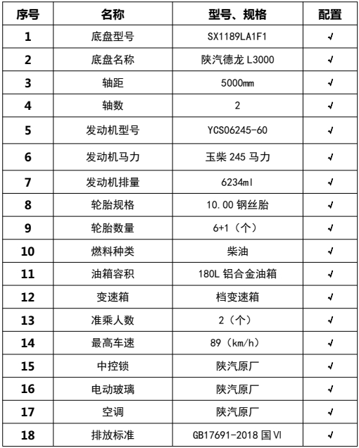 僅用軸距(mm):5000,該車為路面同步碎石封層專用車輛,主要專用裝置為瀝青罐,碎石箱及灑布系統(tǒng).側(cè)防護材料:Q235,采用焊接連接,后防護為專用裝置代替,下緣離地高430mm,ABS系統(tǒng)生產(chǎn)廠家及型號分別為:西安正昌電子有限責任公司(ZQFB-V);隨底盤選裝駕駛室,后部照明燈僅在駐車狀態(tài)下使用,起夜間照明作用,行駛過程中不可點亮。